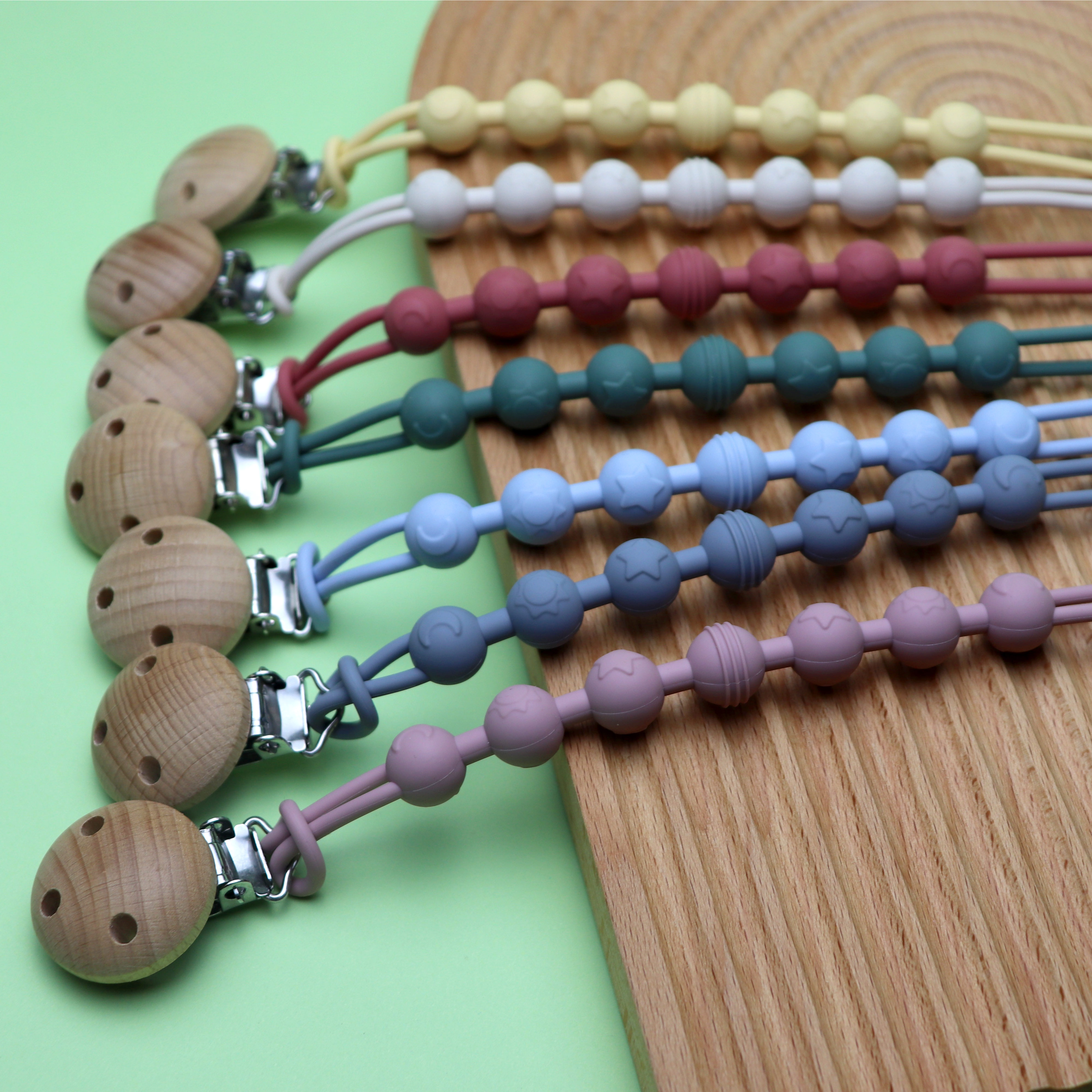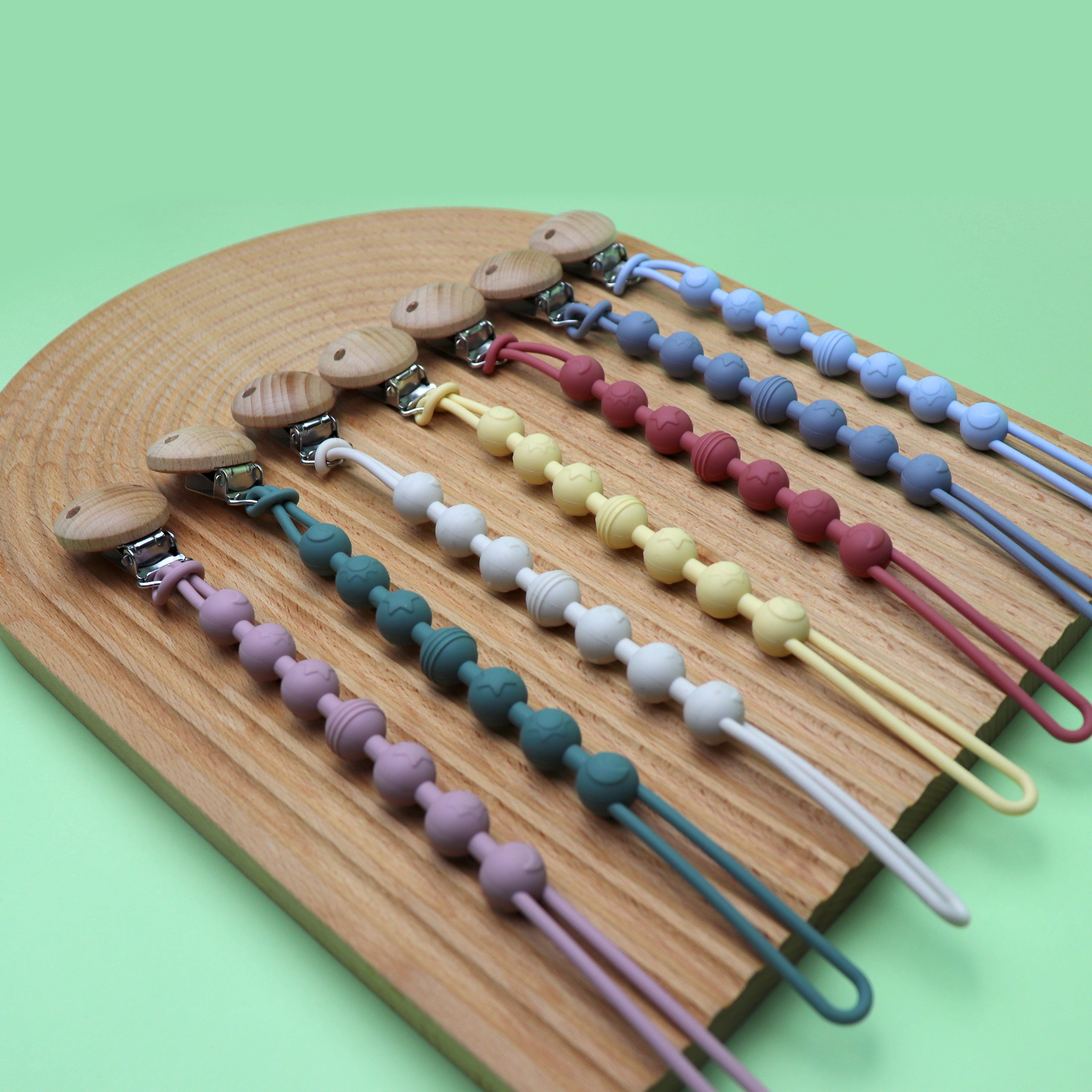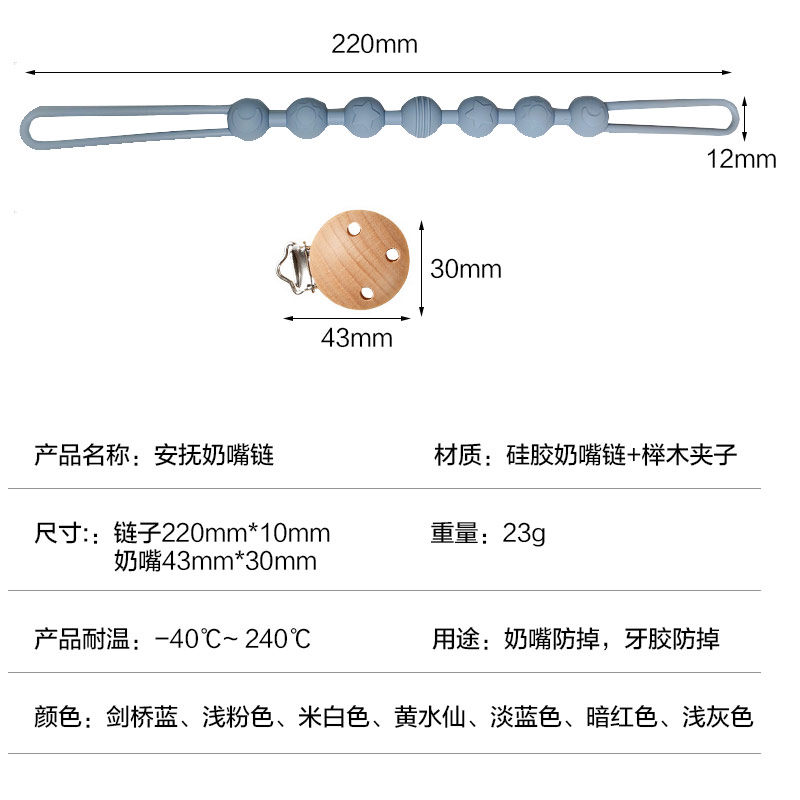 材質:硅膠奶嘴鏈+櫸木夾子